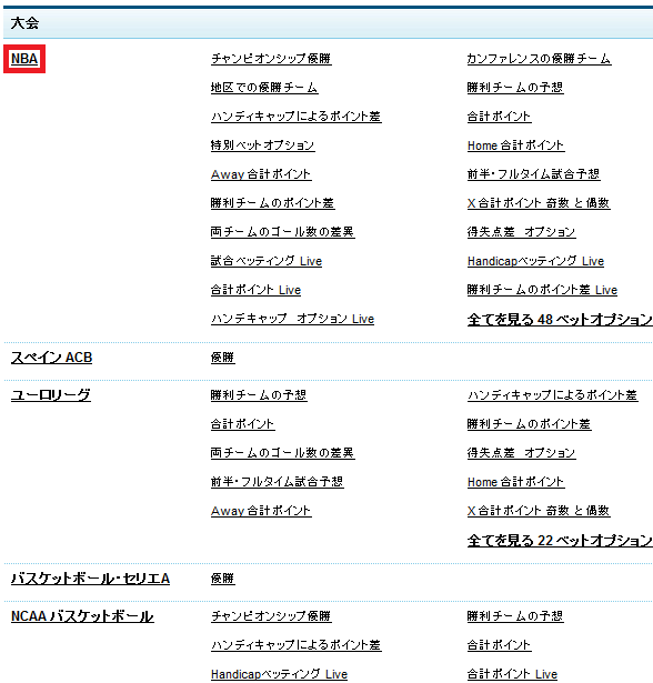 ウィリアムヒルの使い方を分かりやすく説明しますTOP > スポーツの種類 > バスケットボール