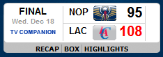 結果はロサンゼルス・クリッパーズが108−95で勝ちました。