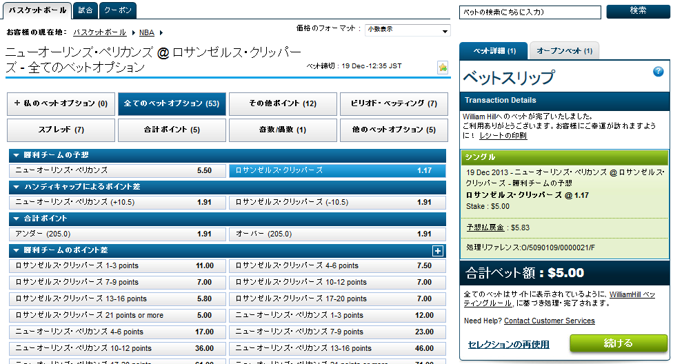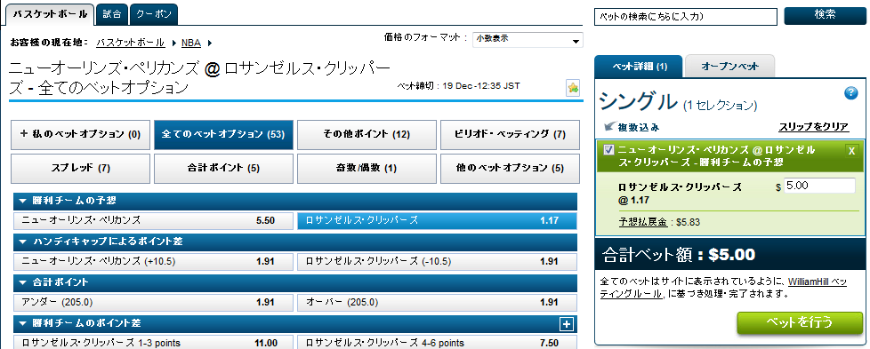 ウィリアムヒルのバスケットボールベットについて説明します。