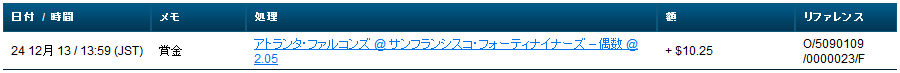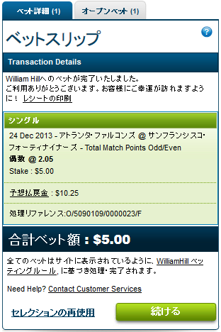 2.05倍のオッズなので、合計得点が偶数なら払戻金は$10.25になります。