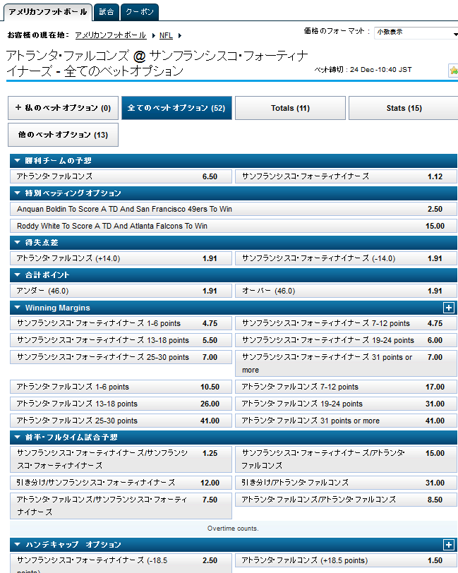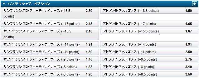 今回はNFLのアトランタ・ファルコンズ対サンフランシスコ・フォーティナイーズを例に取ります。