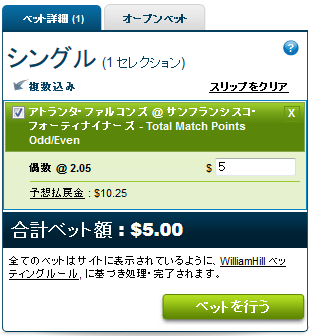 Total Match Points Odd/Evenはトータルポイントが奇数か偶数かという賭けです。
