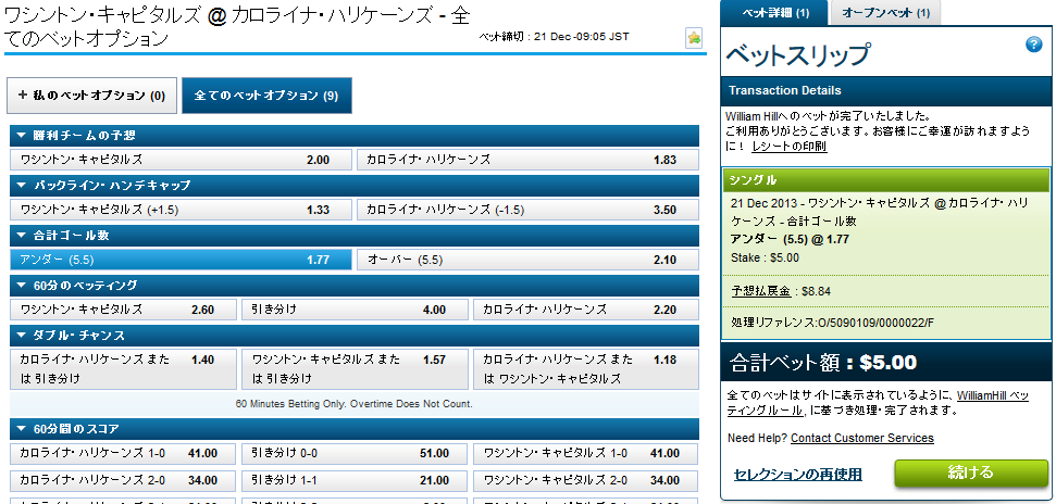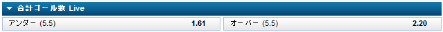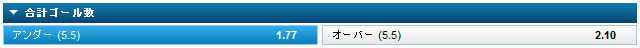 合計ゴール数が5.5点以下だった場合、オッズが1.77倍より$8.84の払戻金となります。