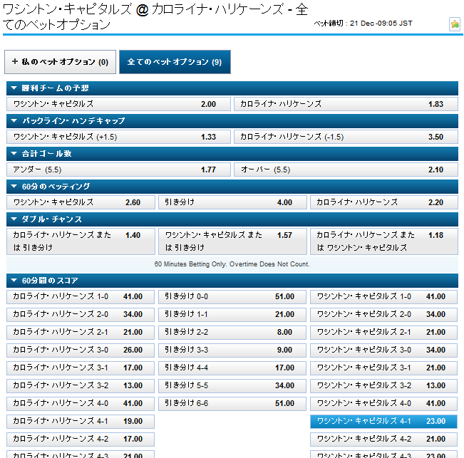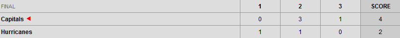 ワシントン・キャピタルズ対カロライナ・ハリケーンズを例に取ります。