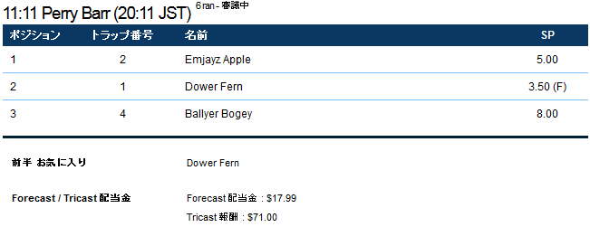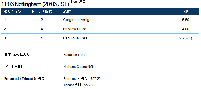 NaThans Canine、Ballyer Bogey、Tromora spiritにそれぞれ$2ほどベットします。