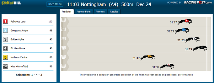 ドッグ・ランニングホームより最近のレース結果より、コンピューターが分析した予想を見ることができます。