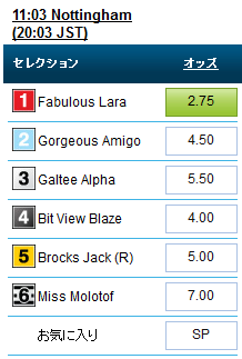 6頭で行われ、、ウィリアムヒルでは1着を当てるベッティングになっています。