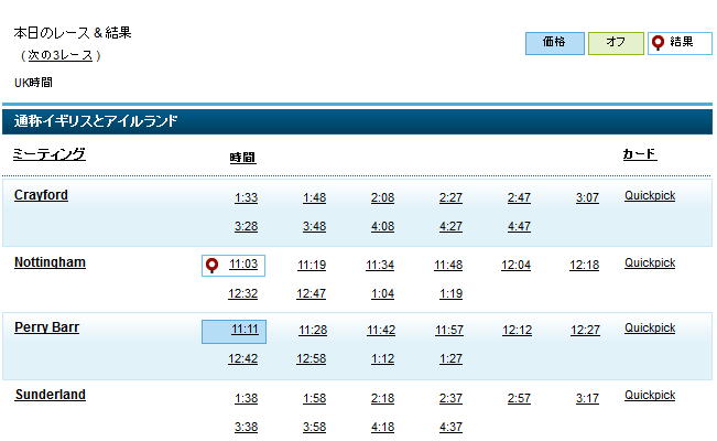 ウィリアムヒルではこのようなベッティングボードになっています。