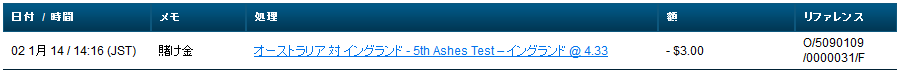 試合ベッティングでイングランドに$3ほどベットしてみます。