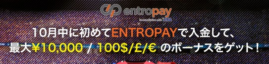 2016年10月中にEntropayで初回入金した新規ユーザーには、1万円($100)を限度に100%マッチボーナスが貰えます。(1万円を入金すれば2万円として反映される。)