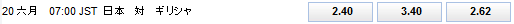 6月19日(木)19:00 日本-ギリシャ (ナタール)
