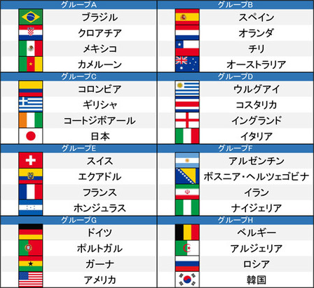 抽選はこのようになり、日本はC組みでコートジボアール、ギリシア、コロンビアと対戦します。