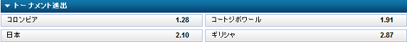 決勝トーナメント進出国オッズ