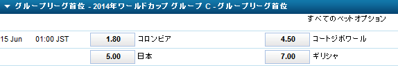 W杯ワールドカップ2014 オッズについて