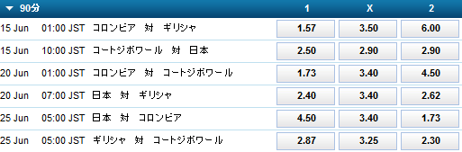 2018.7.16更新 2018.6.18記事作成ワールドカップ2018年ロシア大会のウィリアムヒルのマーケットを日本戦を中心に見てみます。コロンビア戦セネガル...