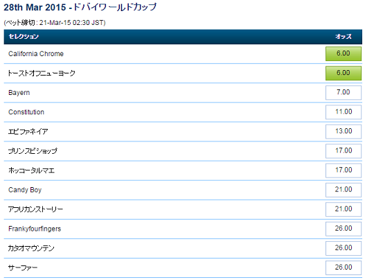 ウィリアムヒルの使い方を分かりやすく説明しますTOP > ドバイワールドカップ > ドバイワールドカップ2015