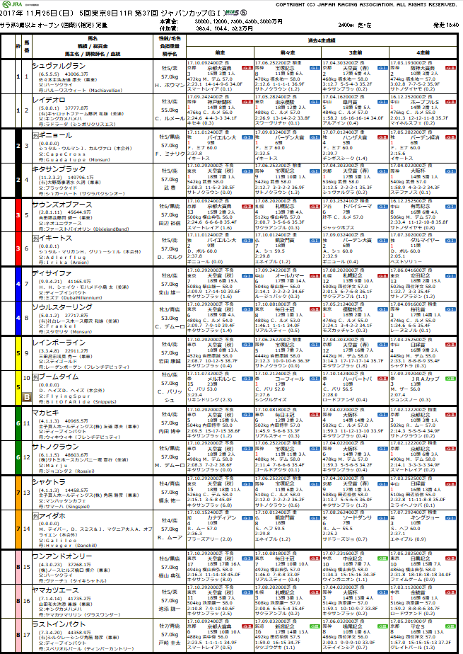 2017.11.29 編集 2017.11.24 更新目次ジャパンカップとは出走馬ブックメーカーのオッズJRAの最終オッズレース結果ジ...